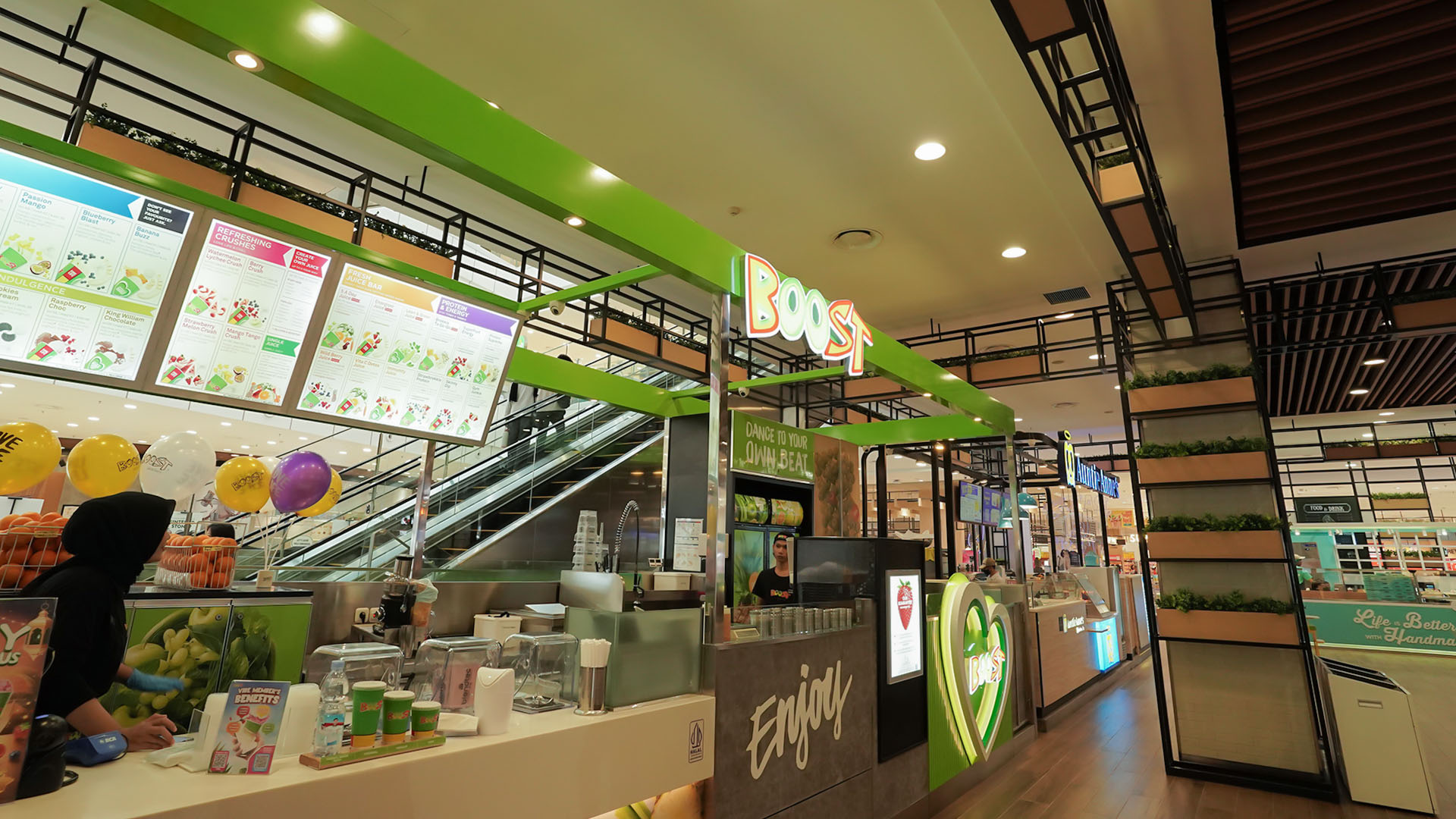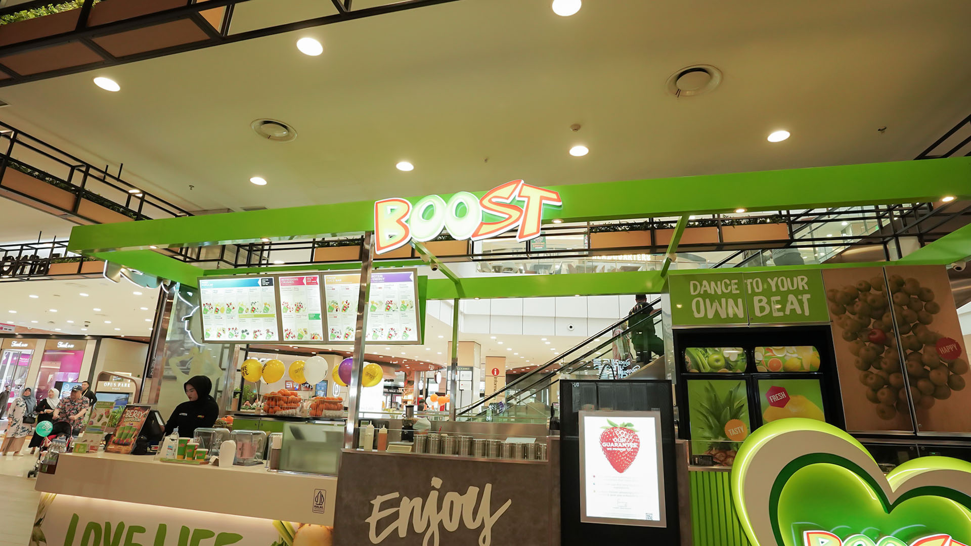 Dengan konsep "healthy on-the-go", Boost Juice cocok banget buat nemenin kamu belanja, jalan-jalan, atau sekadar butuh penyegar di tengah hari yang sibuk. Pilihan menunya juga beragam, dari smoothies kaya protein buat yang aktif olahraga, sampai jus rendah kalori buat yang lagi jaga pola makan. Plus, pelayanan di sini cepat dan ramah, jadi bisa dapetin minuman sehat tanpa ribet!